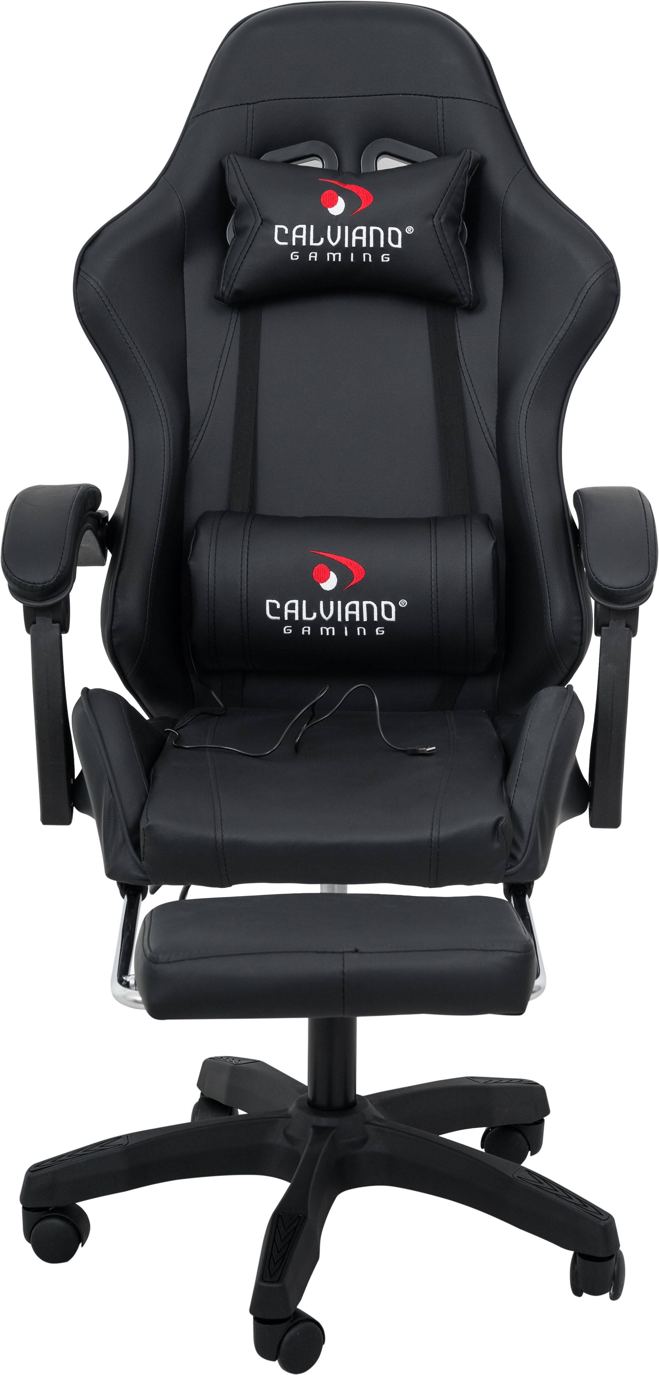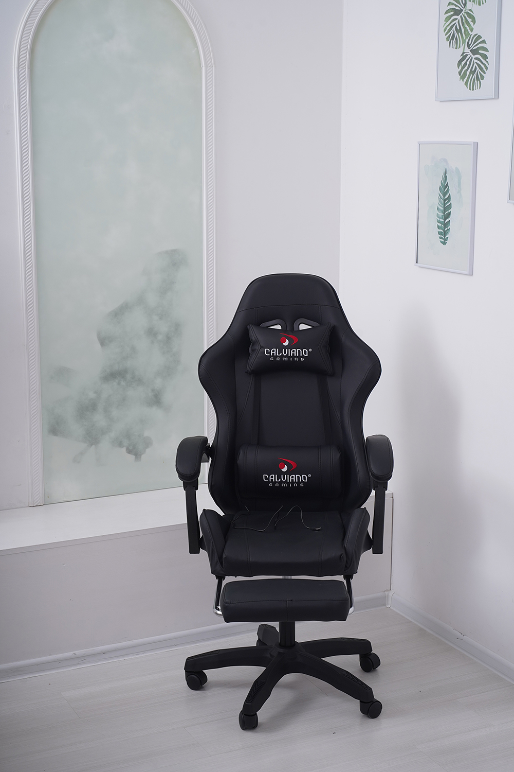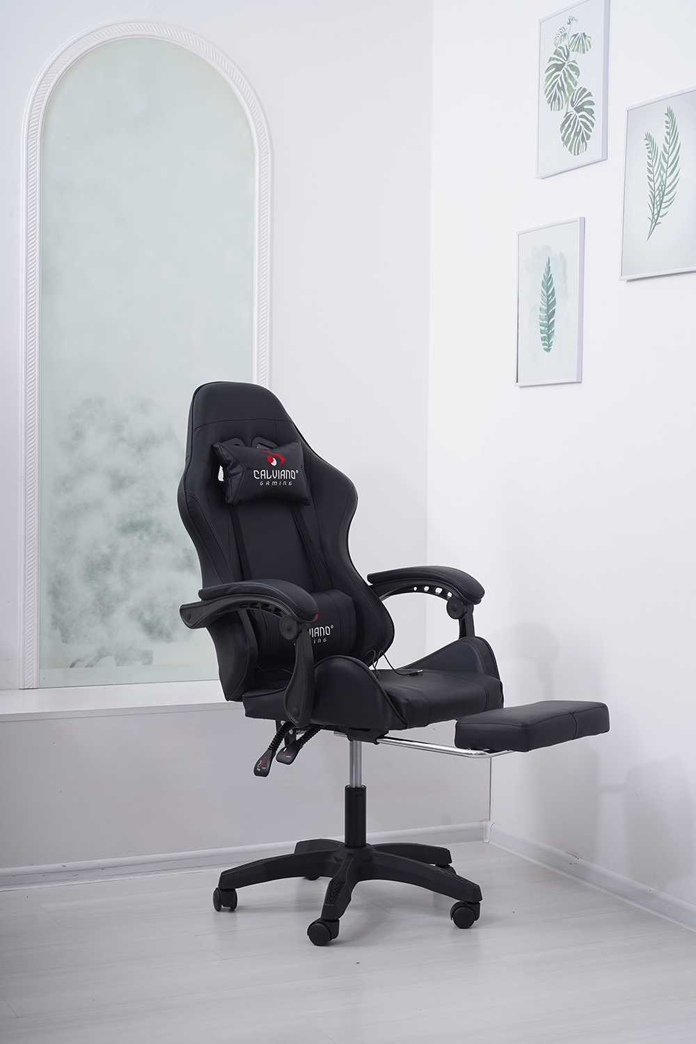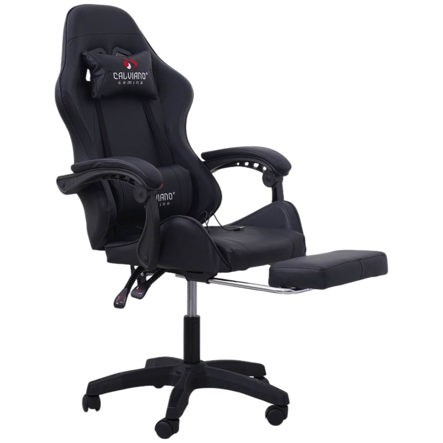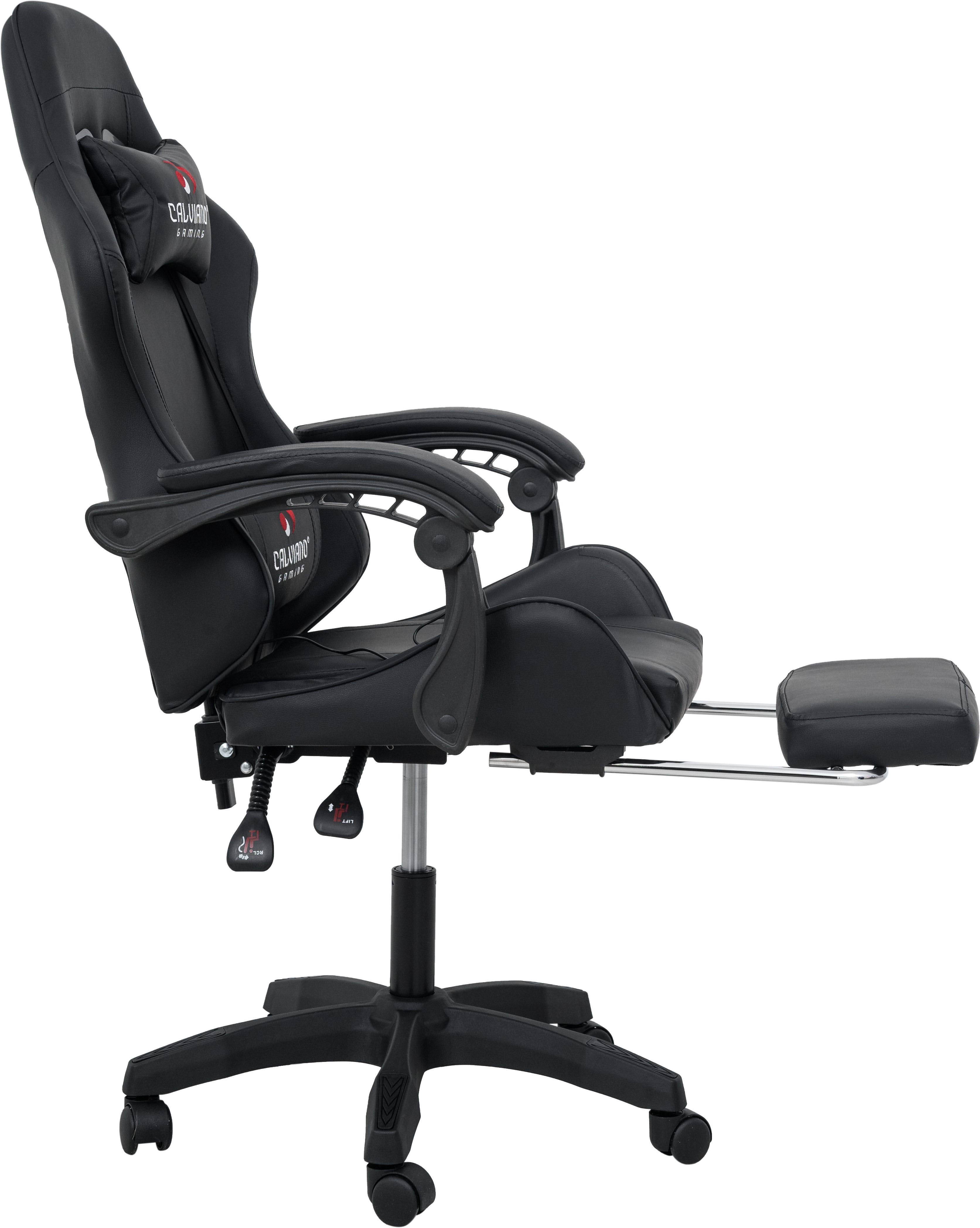 Игровое геймерское кресло Calviano 1584 Черное PU с подножкой
