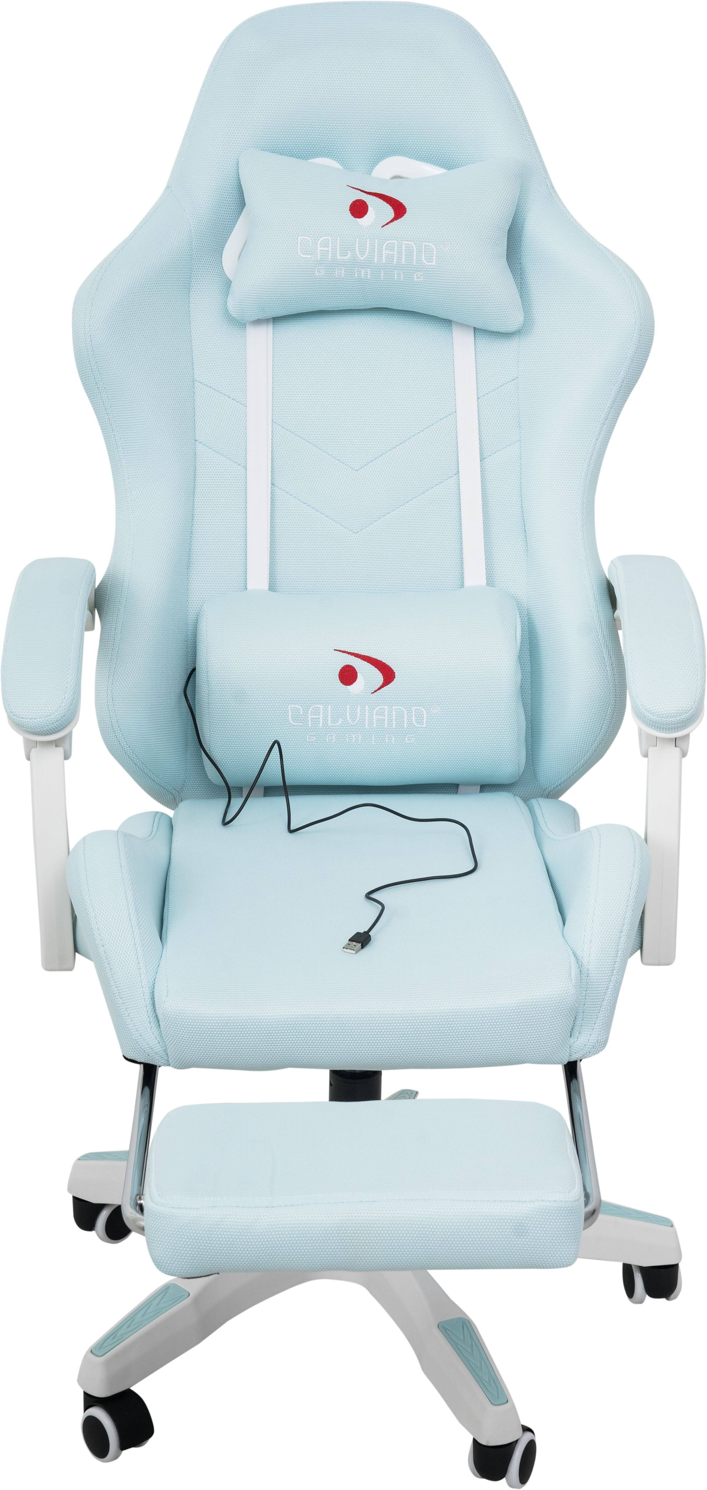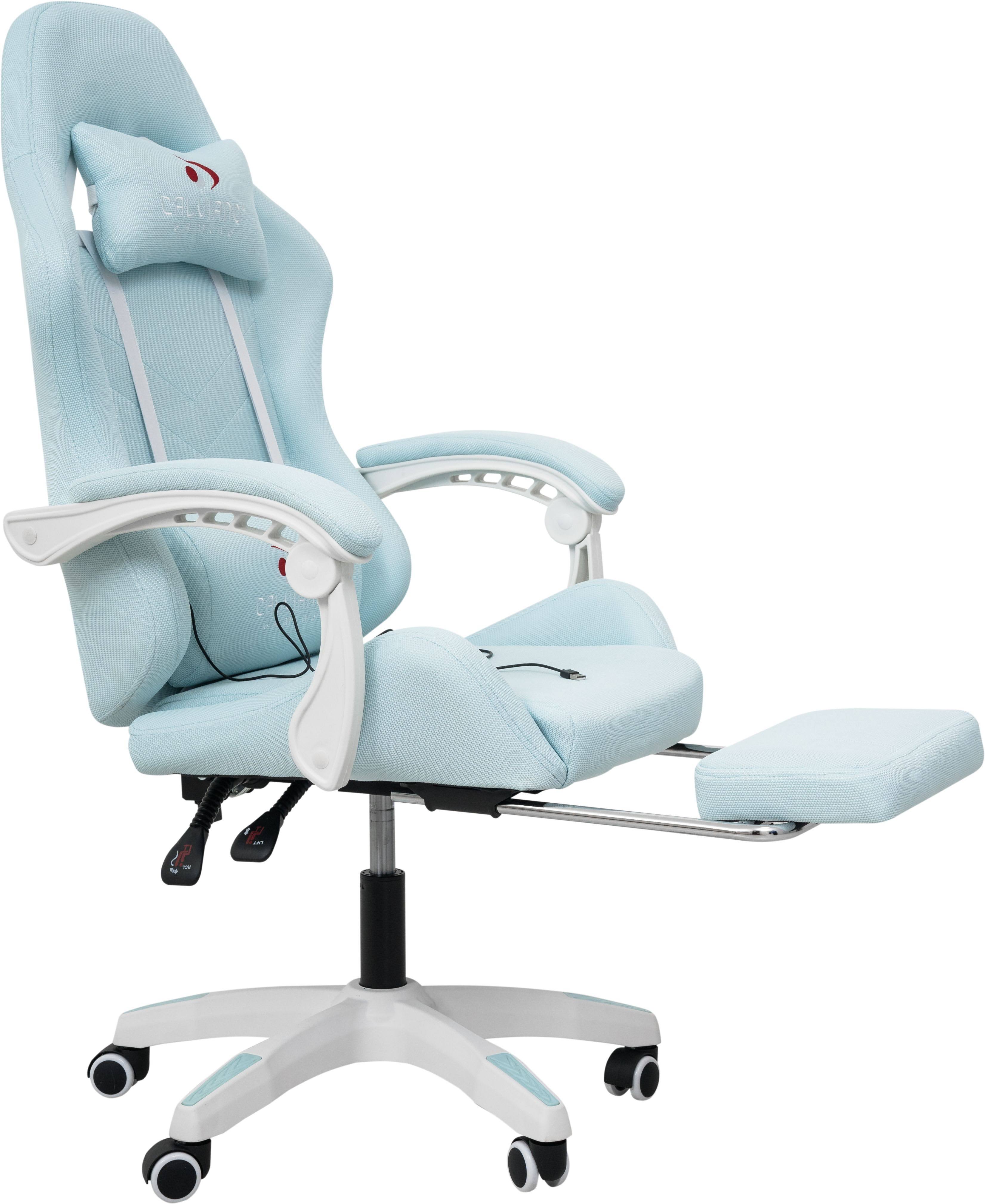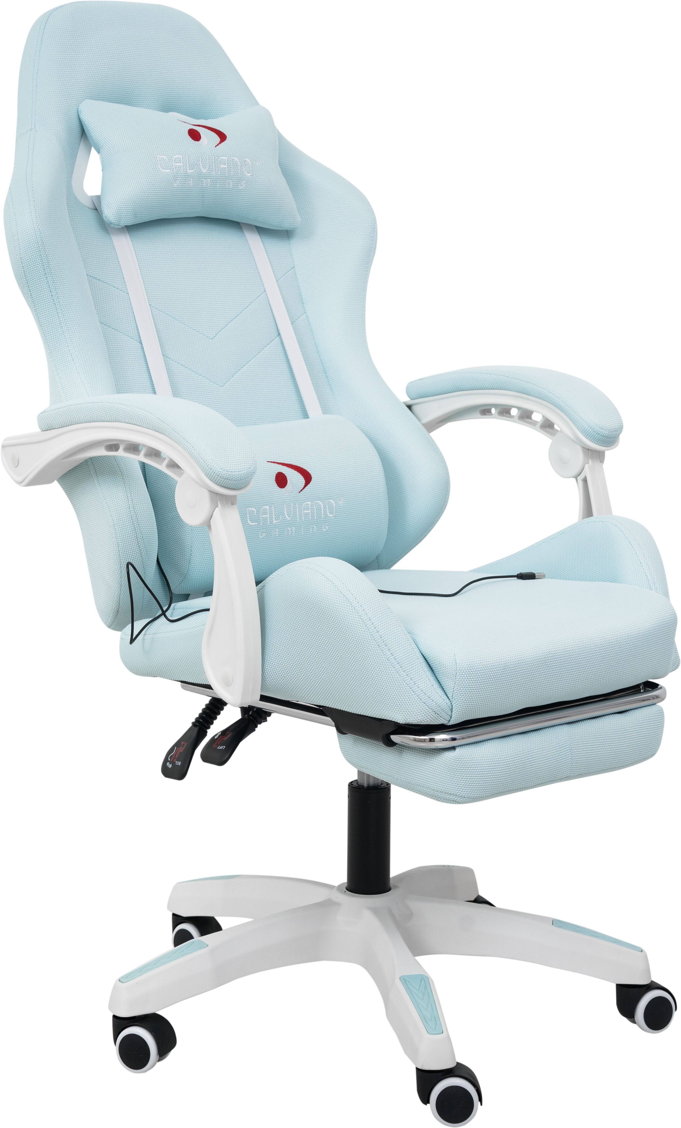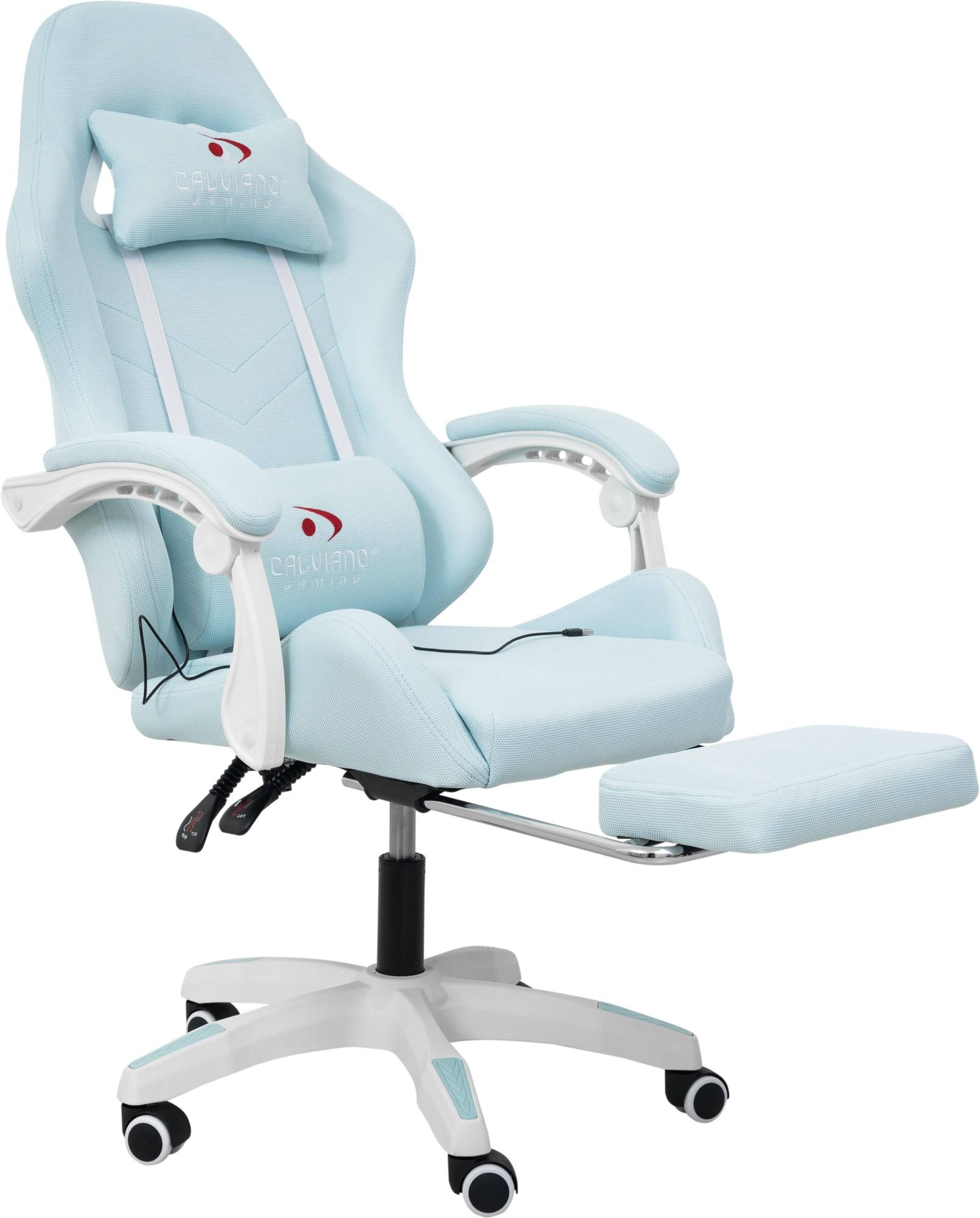 Игровое геймерское кресло Calviano 1584 Голубой, ткань с подножкой