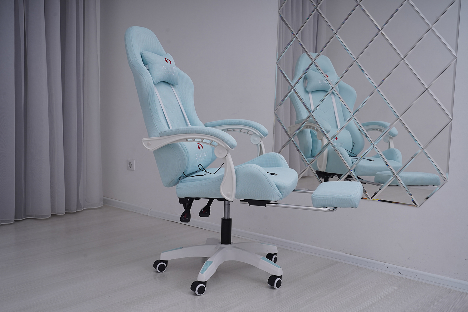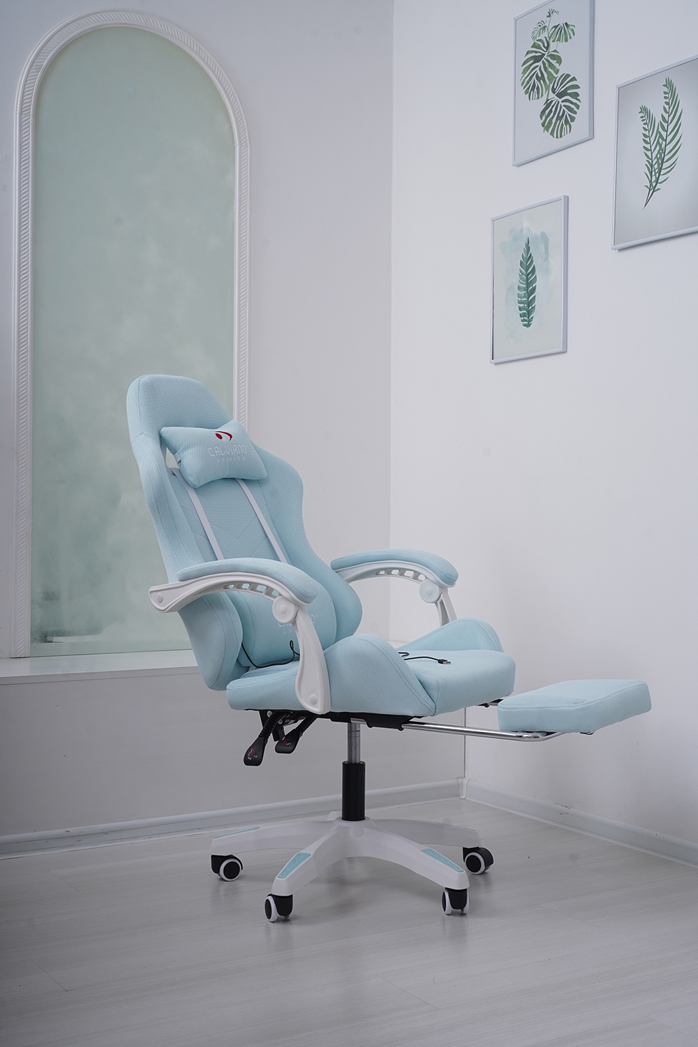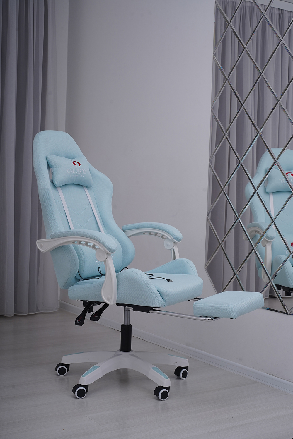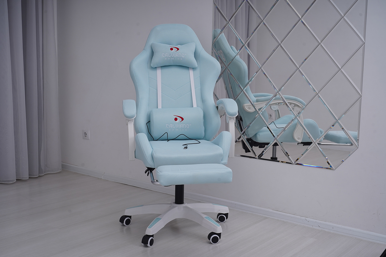 Игровое геймерское кресло Calviano 1584 Голубой, ткань с подножкой