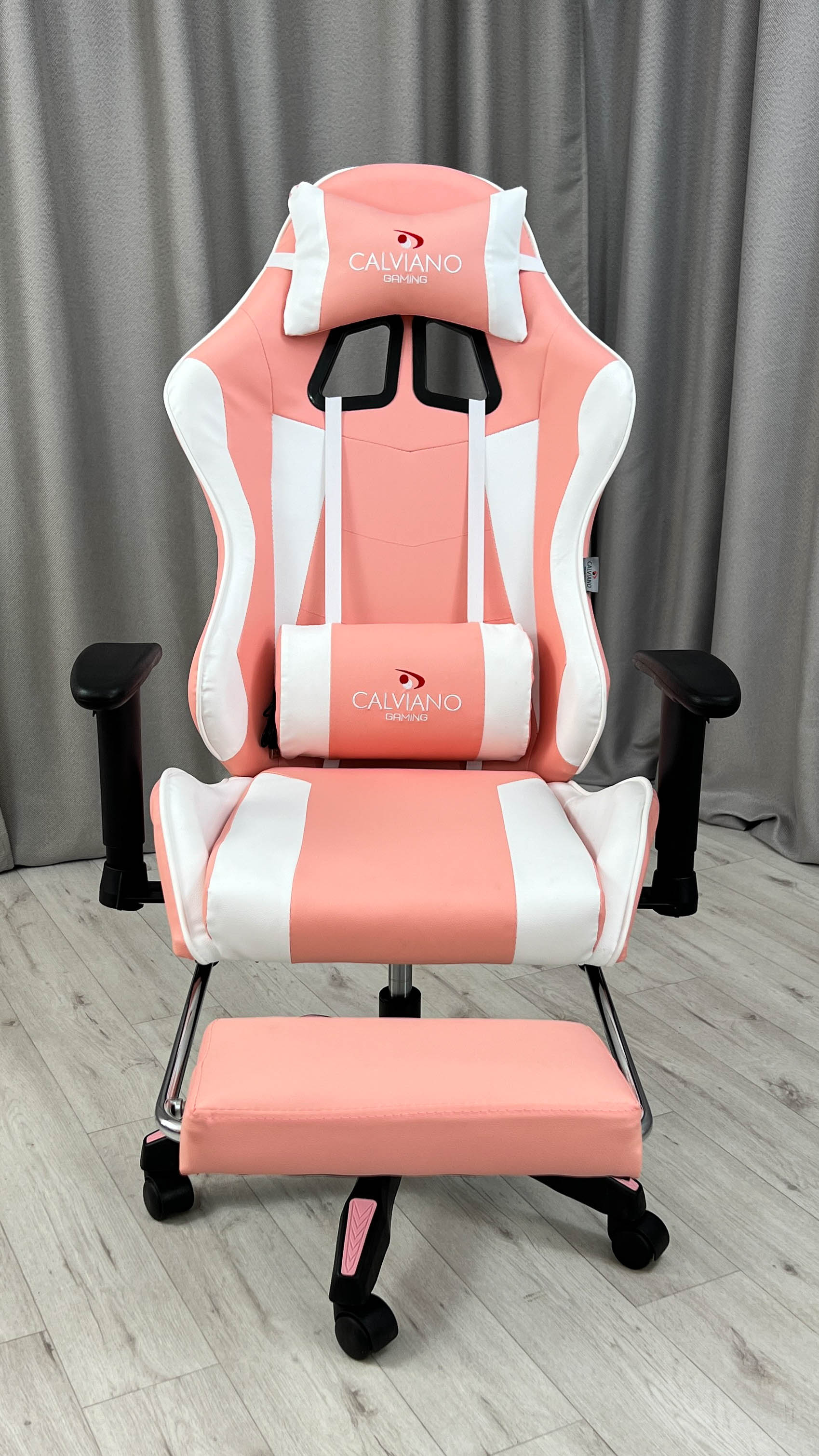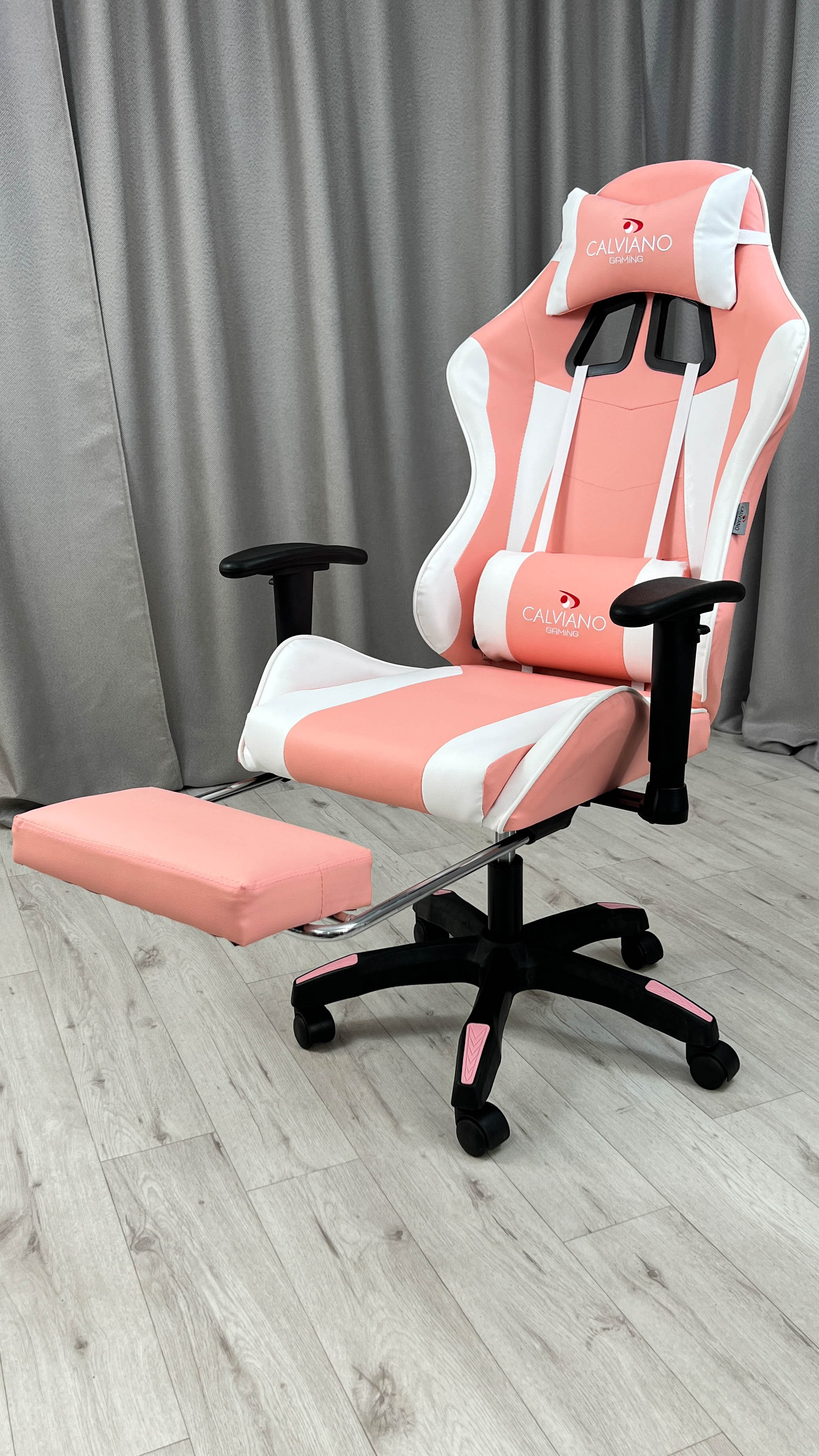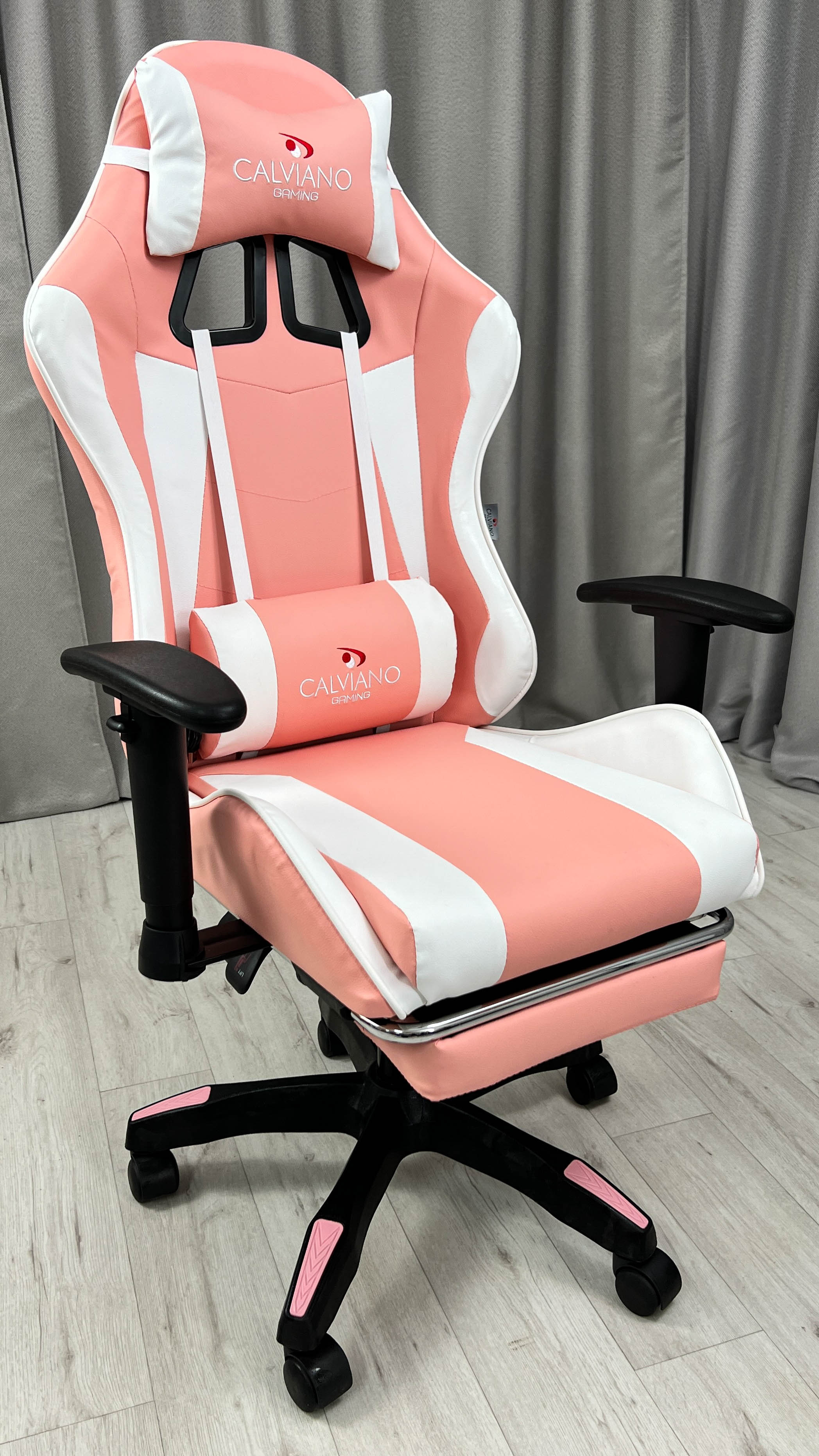 Игровое геймерское кресло Calviano 1585 Розовый, с подножкой