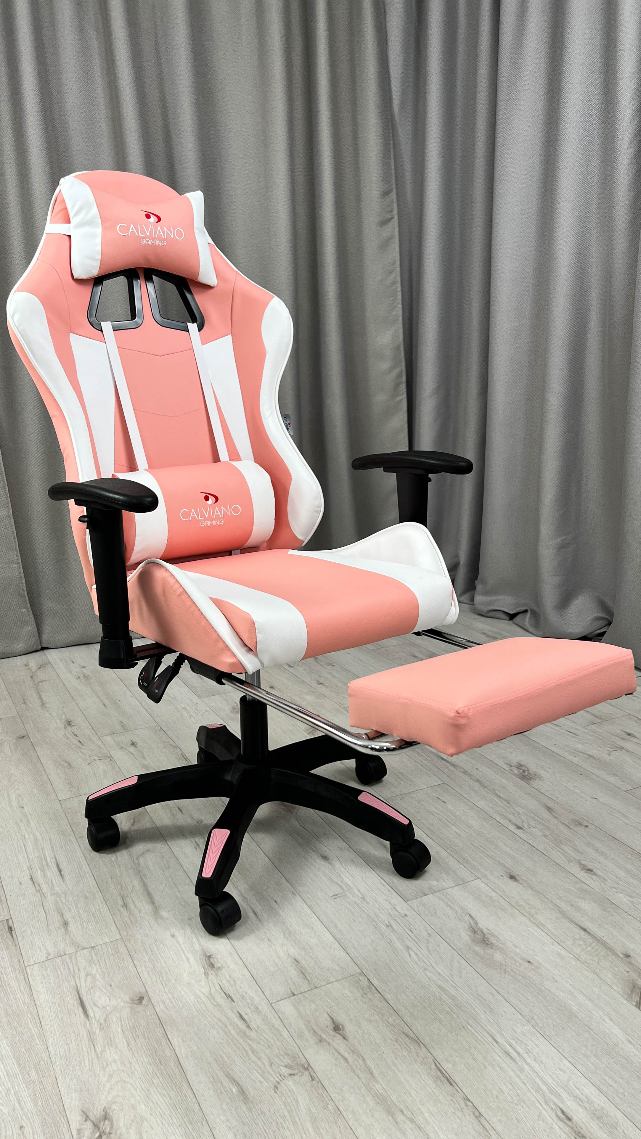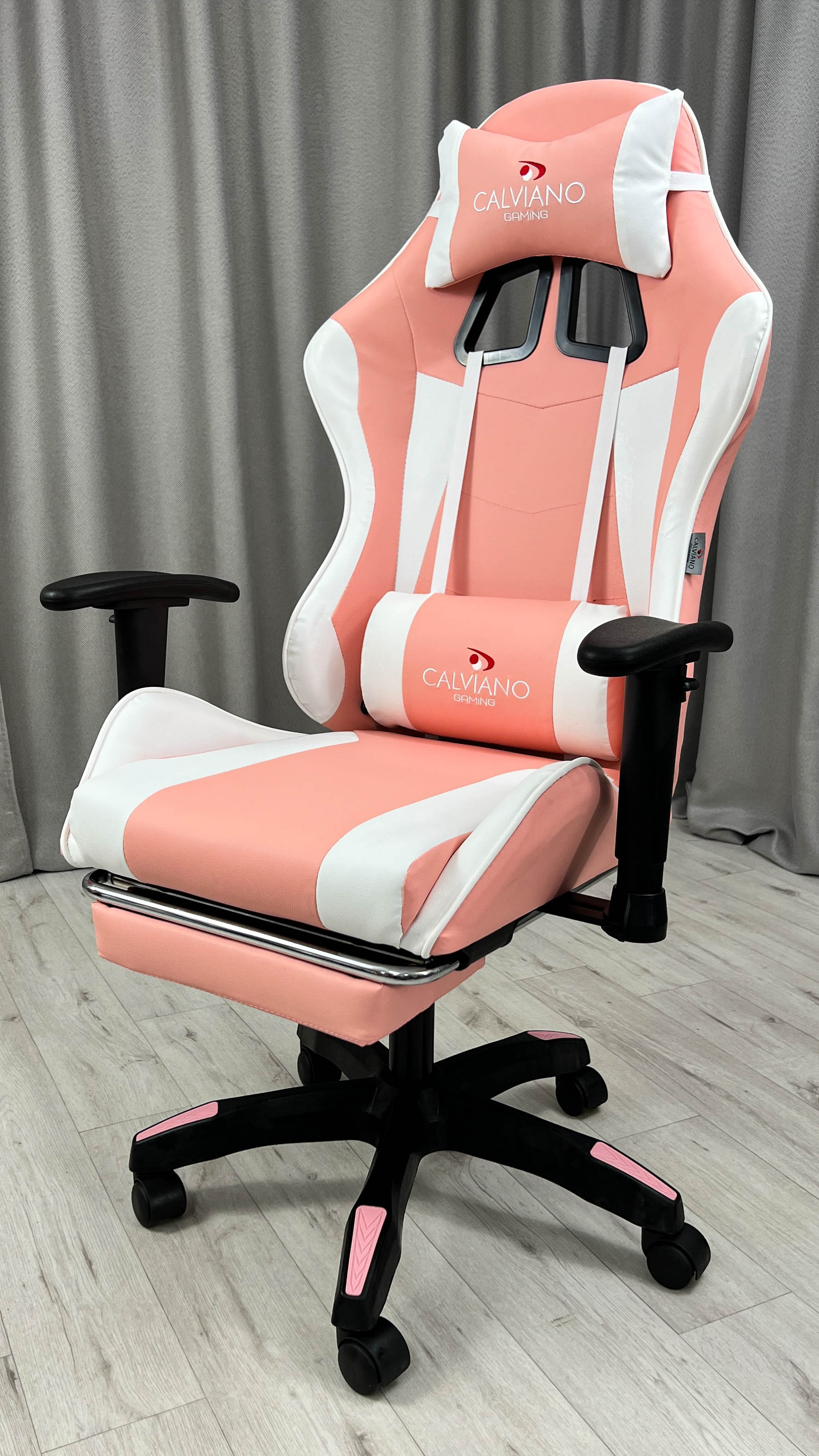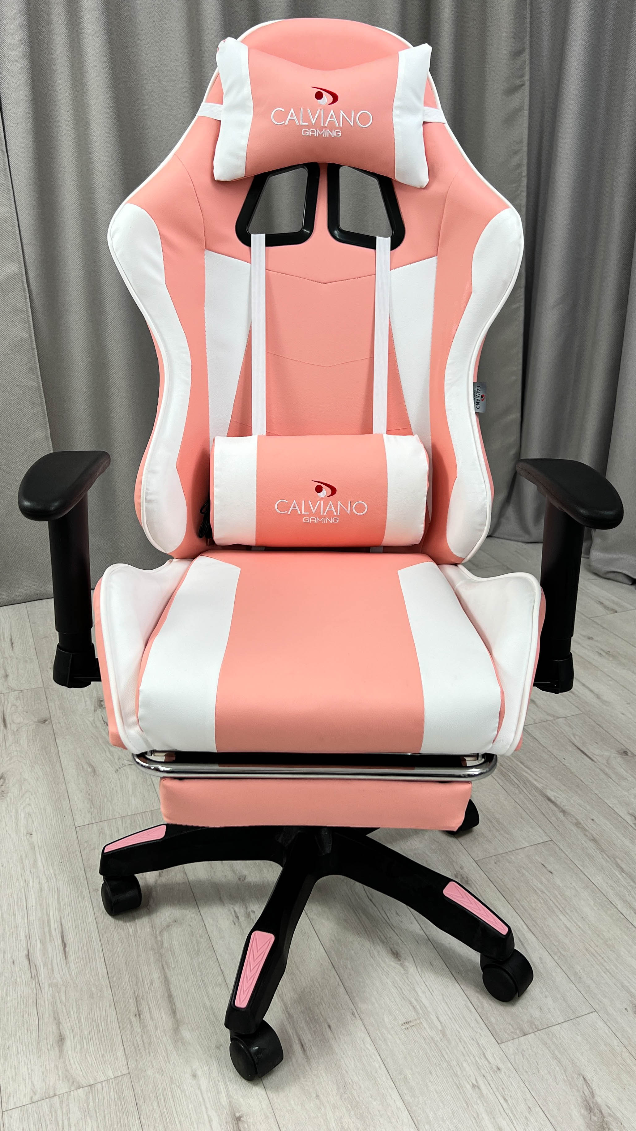 Игровое геймерское кресло Calviano 1585 Розовый, с подножкой