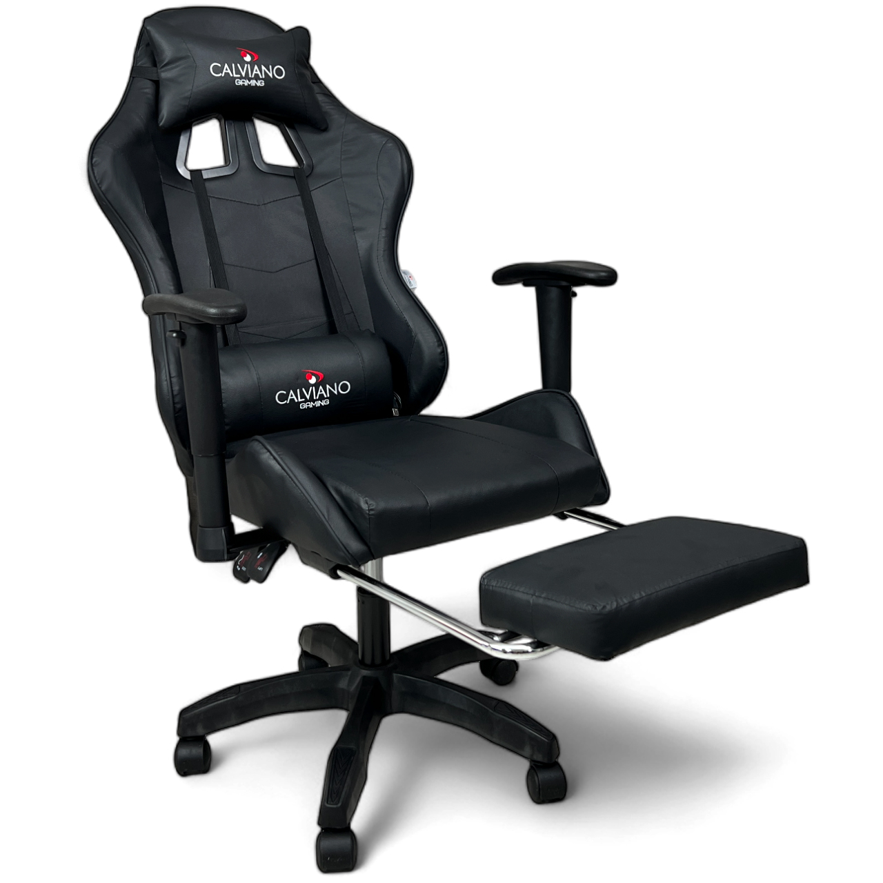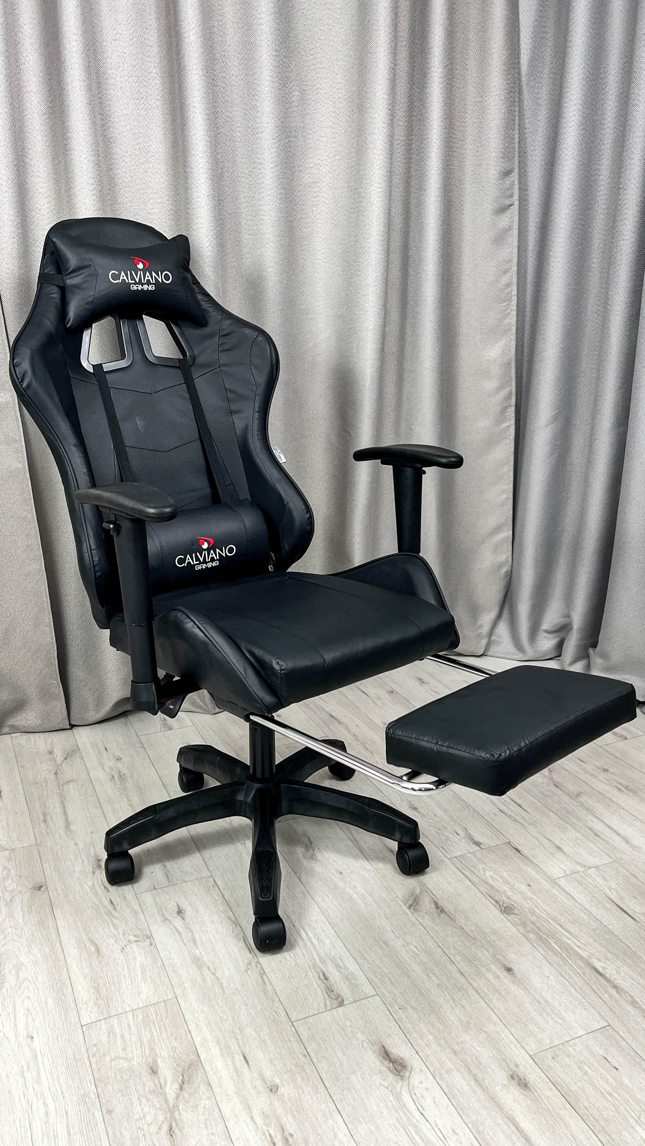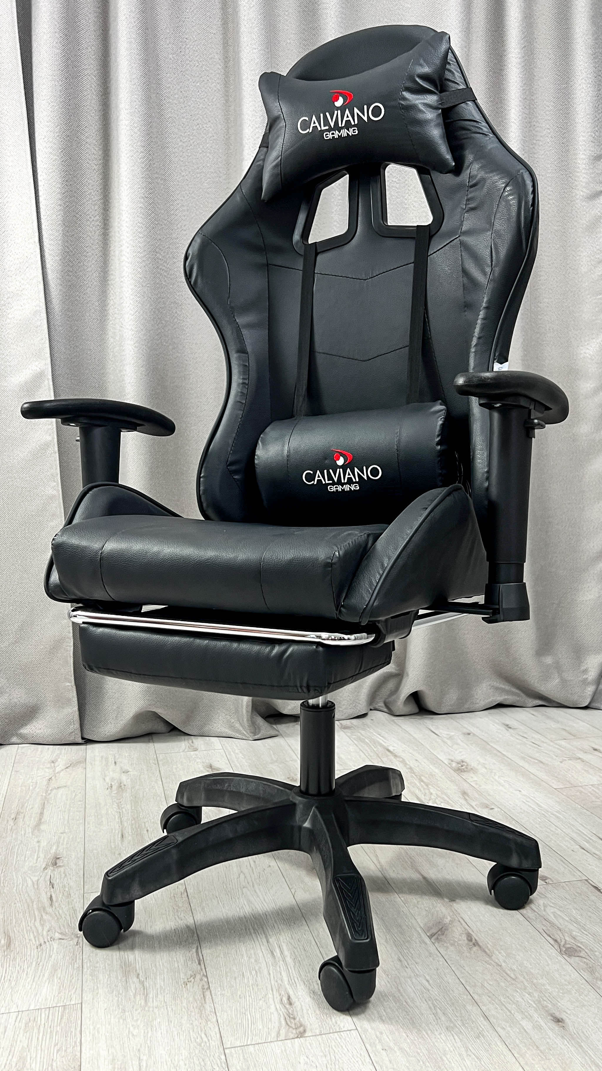 Игровое геймерское кресло Calviano 1585 Черный, с подножкой