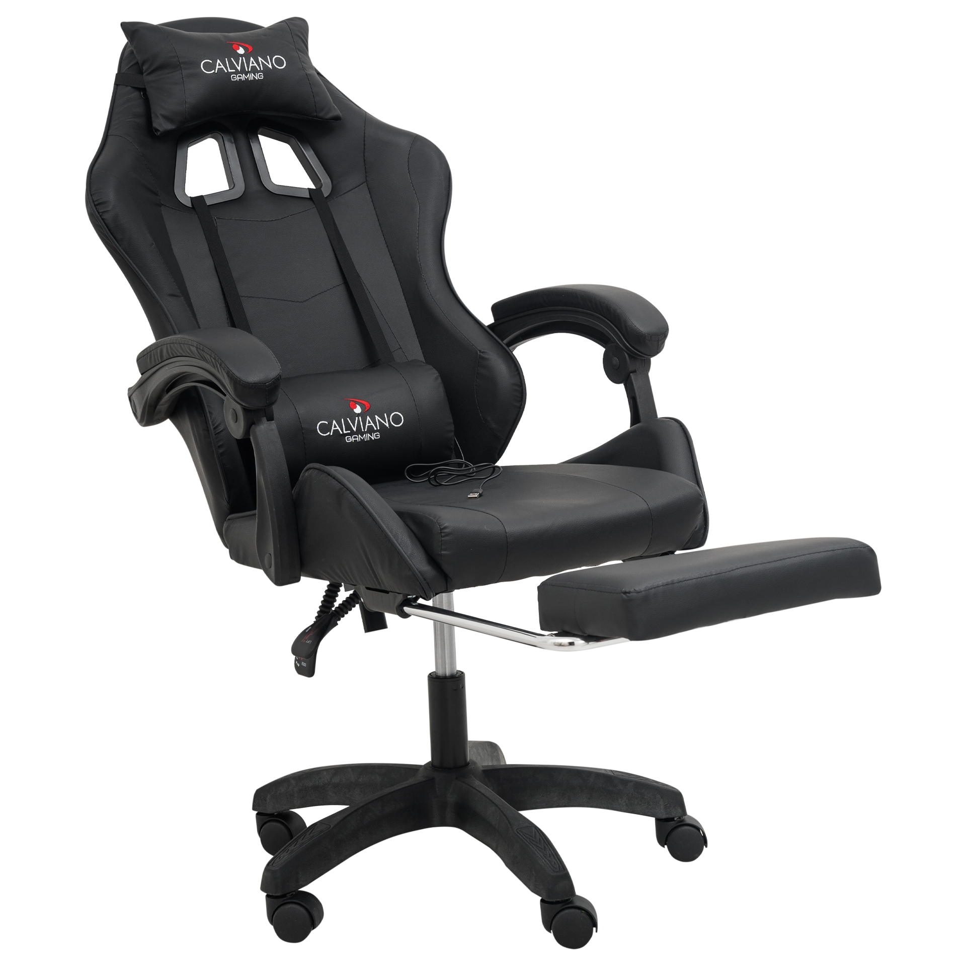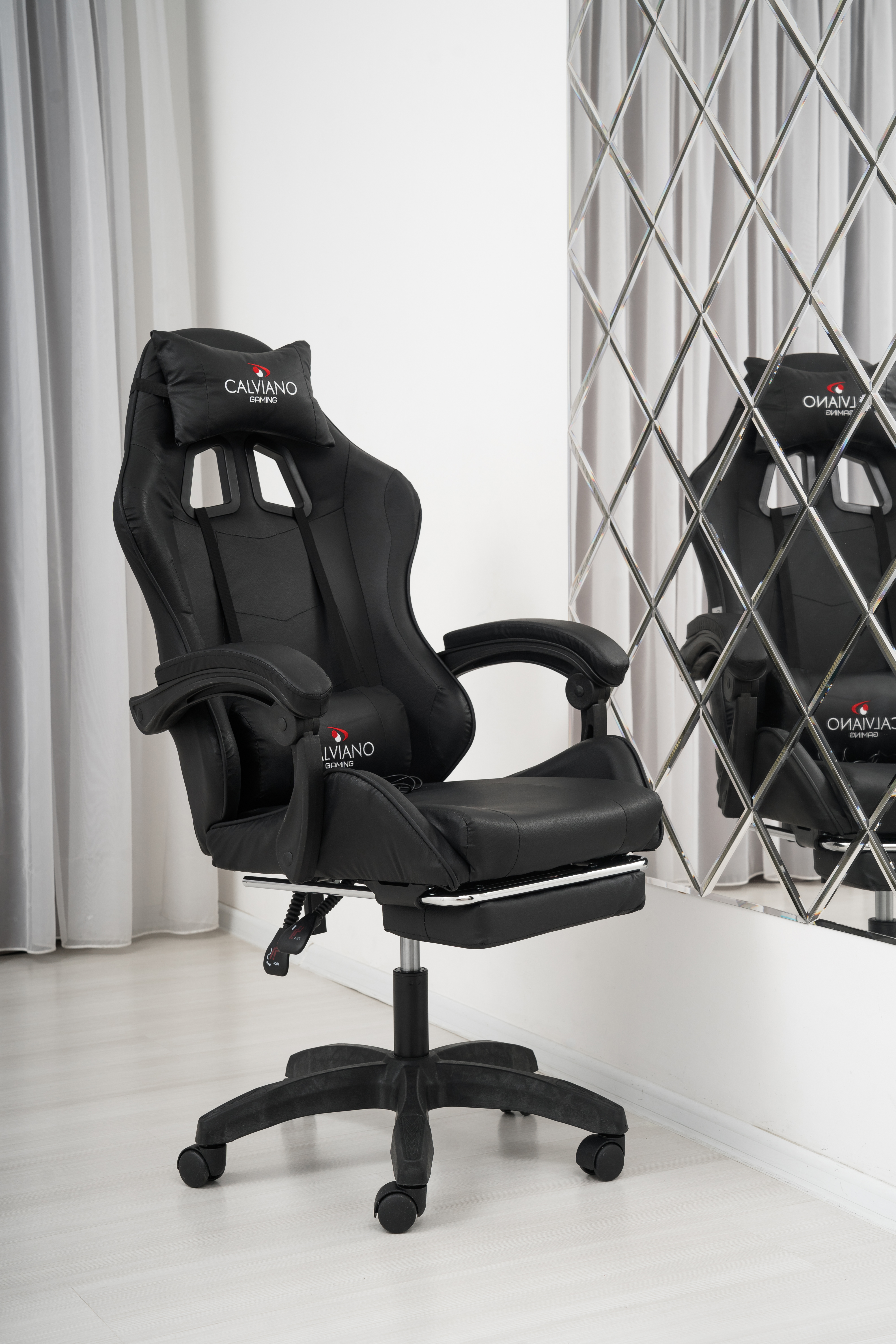 Игровое геймерское кресло Calviano 1583 Черный, с подножкой